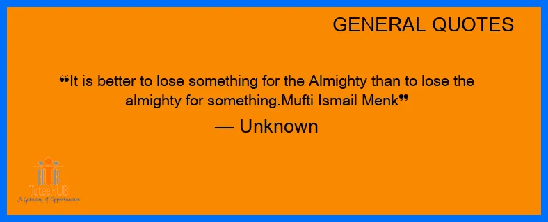 It is BETTER to LOSE SOMETHING for the ALMIGHTY than to lose the almighty for something.Mufti Ismail Menk