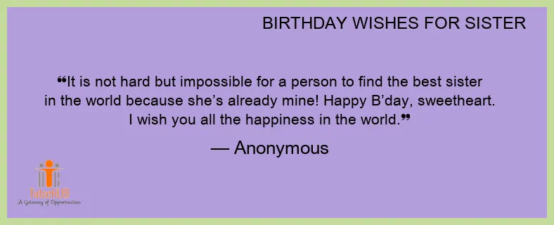 It is not hard but impossible for a person to find the best sister in the world because she’s already mine! Happy B’day, sweetheart. I wish you all the happiness in the world.