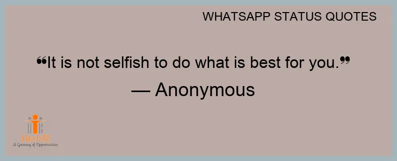 It is not selfish to do what is best for you.