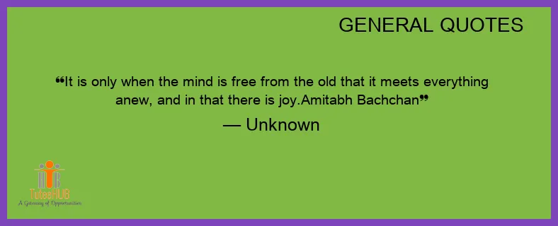 It is only when the MIND is FREE from the OLD that it meets EVERYTHING anew, and in that there is joy.Amitabh BACHCHAN