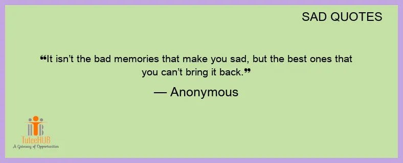 It isn’t the bad memories that make you sad, but the best ones that you can’t bring it back.