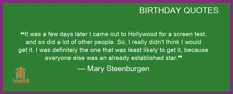 It was a few days later I came out to HOLLYWOOD for a screen test, and so did a lot of other people. So, I really didn't think I WOULD get it. I was definitely the one that was LEAST likely to get it, because everyone else was an already established STAR.