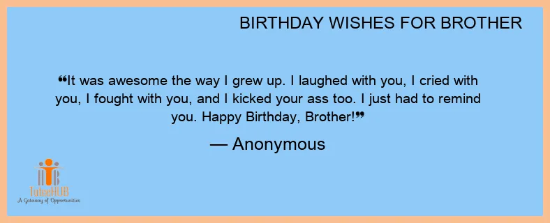 It was awesome the way I grew up. I laughed with you, I cried with you, I fought with you, and I kicked your ass too. I just had to remind you. Happy Birthday, Brother!
