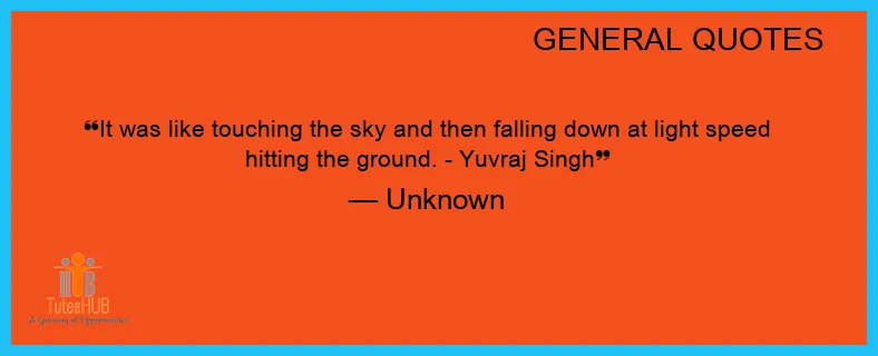 It was like touching the SKY and then falling down at light speed HITTING the GROUND. - Yuvraj Singh