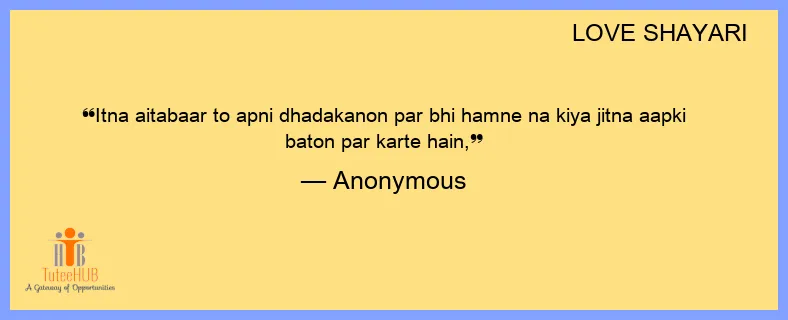 Itna aitabaar to apni dhadakanon par bhi hamne na kiya jitna aapki baton par karte hain,