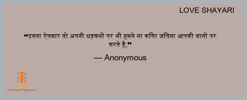इतना ऐतबार तो अपनी धड़कनों पर भी हमने ना किया जितना आपकी बातों पर करते हैं,