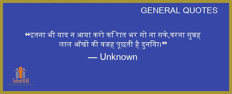 इतना भी याद न आया करो कि रात भर सो ना सके,वरना सुबह लाल आँखों की वजह पूछती है दुनिया।