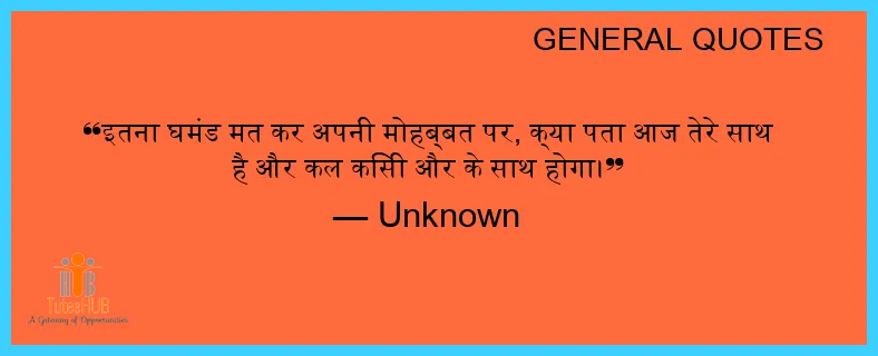 इतना घमंड मत कर अपनी मोहब्बत पर, क्या पता आज तेरे साथ है और कल किसी और के साथ होगा।