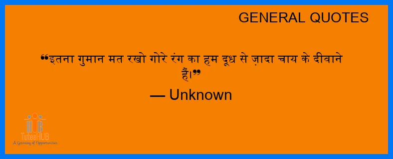 इतना गुमान मत रखो गोरे रंग का हम दूध से ज़ादा चाय के दीवाने हैं।