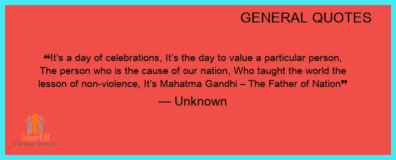 It’s a day of celebrations, It’s the day to VALUE a particular person, The person who is the cause of our nation, Who taught the WORLD the lesson of non-violence, It’s MAHATMA Gandhi – The FATHER of Nation