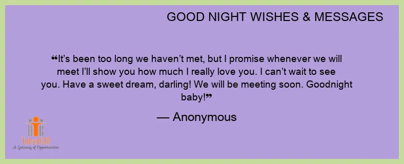 It’s been too long we haven’t met, but I promise whenever we will meet I’ll show you how much I really love you. I can’t wait to see you. Have a sweet dream, darling! We will be meeting soon. Goodnight baby!