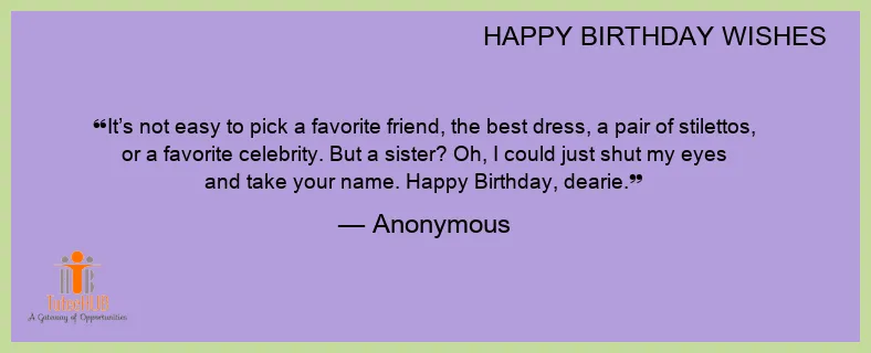 It’s not easy to pick a favorite friend, the best dress, a pair of stilettos, or a favorite celebrity. But a sister? Oh, I could just shut my eyes and take your name. Happy Birthday, dearie.