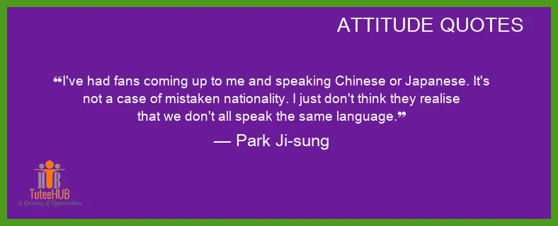 I've had FANS COMING up to me and speaking Chinese or JAPANESE. It's not a case of MISTAKEN nationality. I just don't think they realise that we don't all speak the same LANGUAGE.