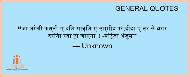 जा लगेगी कश्ती-ए-दिल साहिल-ए-उम्मीद पर,दीदा-ए-तर से अगर दरिया रवाँ हो जाएगा !! -मिर्ज़ा अंजुम