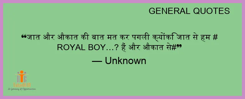 जात और औकात की बात मत कर पगली क्योंकि जात से हम # ROYAL BOY…? हैं और औकात से#