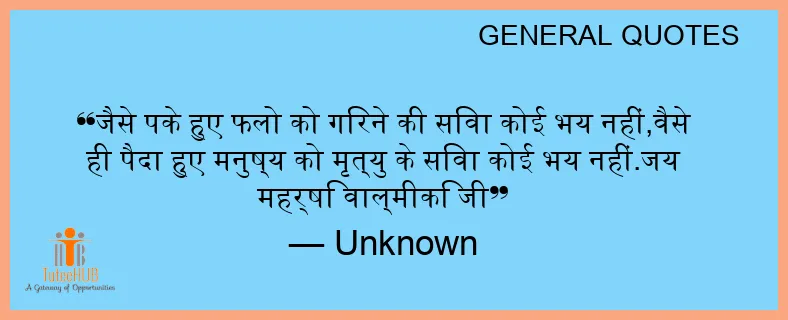 जैसे पके हुए फलो को गिरने की सिवा कोई भय नहीं,वैसे ही पैदा हुए मनुष्य को मृत्यु के सिवा कोई भय नहीं.जय महर्षि वाल्मीकि जी