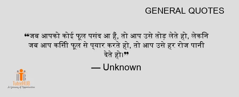 जब आपको कोई फूल पसंद आ हैं, तो आप उसे तोड़ लेते हो, लेकिन जब आप किसी फूल से प्यार करते हो, तो आप उसे हर रोज पानी देते हो।