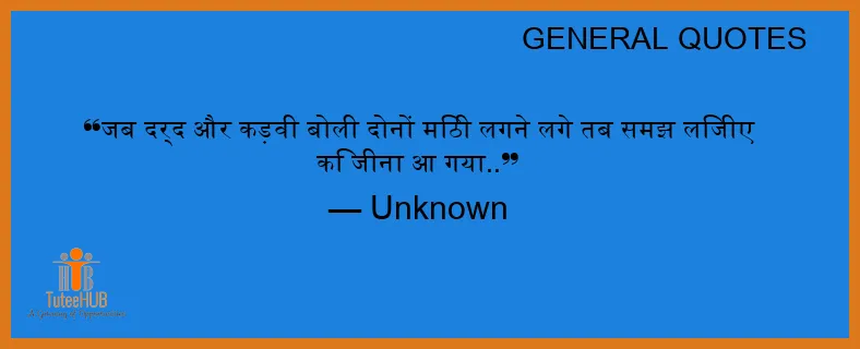 जब दर्द और कड़वी बोली दोनों मिठी लगने लगे तब समझ लिजीए कि जीना आ गया..