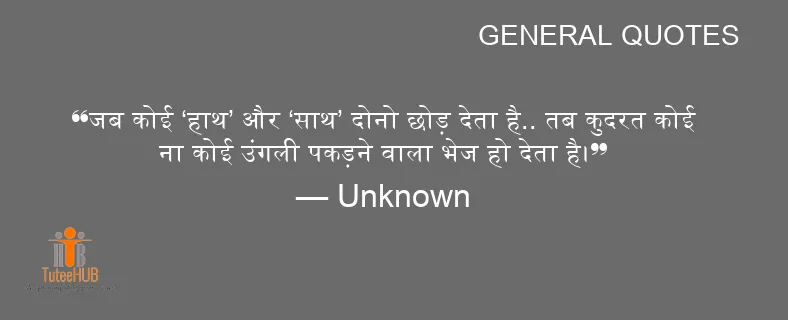 जब कोई ‘हाथ’ और ‘साथ’ दोनो छोड़ देता है.. तब कुदरत कोई ना कोई उंगली पकड़ने वाला भेज हो देता है।
