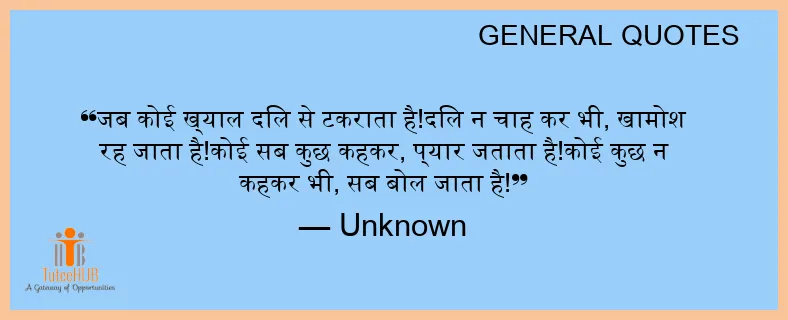 जब कोई ख्याल दिल से टकराता है!दिल न चाह कर भी, खामोश रह जाता है!कोई सब कुछ कहकर, प्यार जताता है!कोई कुछ न कहकर भी, सब बोल जाता है!
