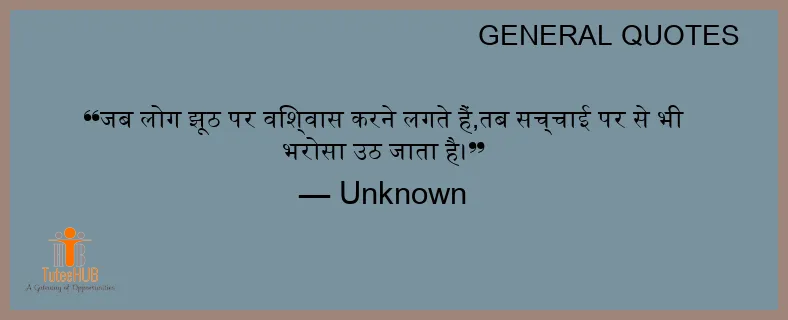 जब लोग झूठ पर विश्वास करने लगते हैं,तब सच्चाई पर से भी भरोसा उठ जाता है।