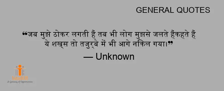 जब मुझे ठोकर लगती हैं तब भी लोग मुझसे जलते हैंकहते हैं ये शख्स तो तज़ुर्बे में भी आगे निकल गया।
