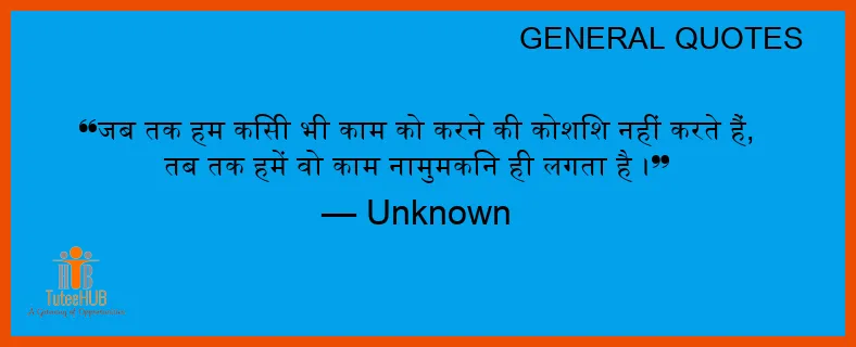जब तक हम किसी भी काम को करने की कोशिश नहीं करते हैं, तब तक हमें वो काम नामुमकिन ही लगता है ।