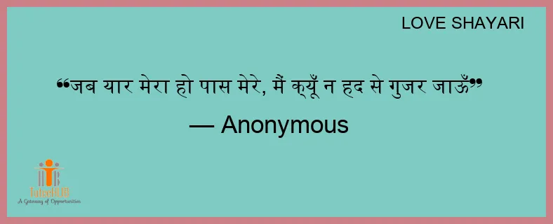 जब यार मेरा हो पास मेरे, मैं क्यूँ न हद से गुजर जाऊँ