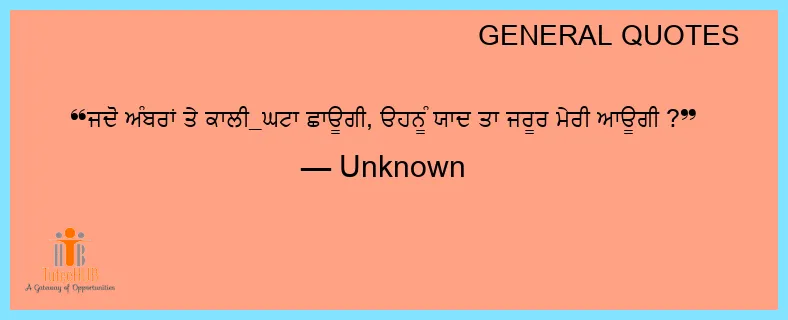 ਜਦੋਂ ਅੰਬਰਾਂ ਤੇ ਕਾਲੀ_ਘਟਾ ਛਾਊਗੀ, ੳਹਨੂੰ ਯਾਦ ਤਾ ਜਰੂਰ ਮੇਰੀ ਆਊਗੀ ?