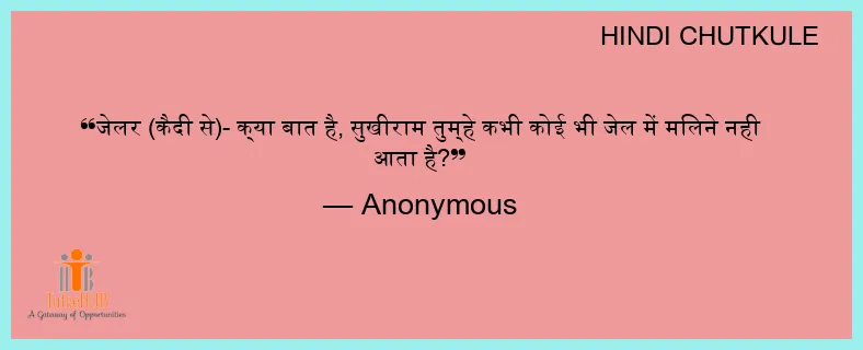 जेलर (कैदी से)- क्या बात है, सुखीराम तुम्हे कभी कोई भी जेल में मिलने नही आता है?
