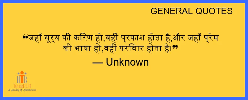 जहाँ सूर्य की किरण हो,वहीं प्रकाश होता है,और जहाँ प्रेम की भाषा हो,वहीं परिवार होता है।