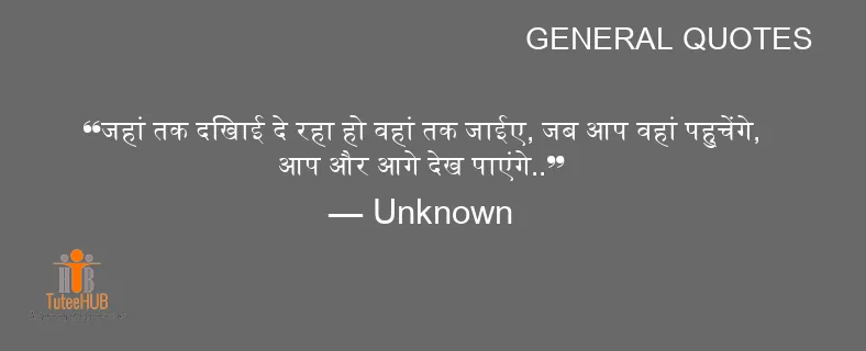 जहां तक दिखाई दे रहा हो वहां तक जाईए, जब आप वहां पहुचेंगे, आप और आगे देख पाएंगे..