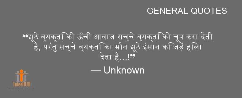 झूठे व्यक्ति की ऊँची आवाज सच्चे व्यक्ति को चूप करा देती है, परंतु सच्चे व्यक्ति का मौन झूठे इंसान कि जड़ें हिला देता है…!