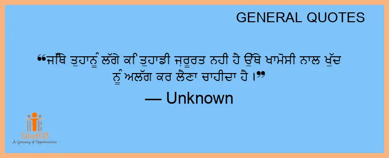 ਜਿੱਥੇ ਤੁਹਾਨੂੰ ਲੱਗੇ ਕਿ ਤੁਹਾਡੀ ਜ਼ਰੂਰਤ ਨਹੀਂ ਹੈ ਉੱਥੇ ਖਾਮੋਸੀ ਨਾਲ ਖੁੱਦ ਨੂੰ ਅਲੱਗ ਕਰ ਲੈਣਾ ਚਾਹੀਦਾ ਹੈ ।