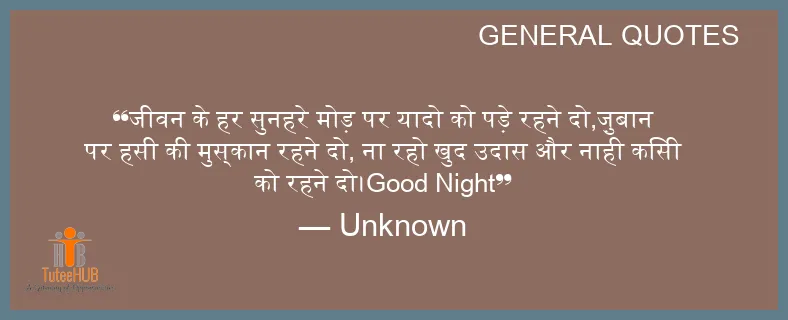 जीवन के हर सुनहरे मोड़ पर यादो को पड़े रहने दो,ज़ुबान पर हसी की मुस्कान रहने दो, ना रहो खुद उदास और नाही किसी को रहने दो।Good Night
