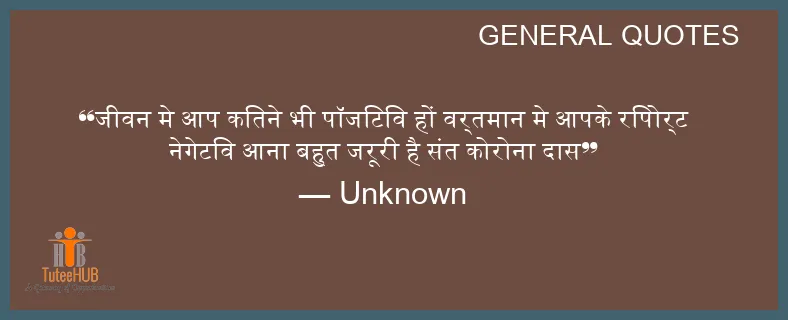 जीवन मे आप कितने भी पॉजिटिव हों वर्तमान मे आपके रिपोर्ट नेगेटिव आना बहुत जरूरी है संत कोरोना दास