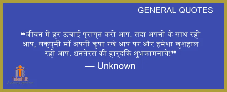 जीवन में हर ऊचाई प्राप्त करो आप, सदा अपनों के साथ रहो आप, लक्ष्मी माँ अपनी कृपा रखे आप पर और हमेशा खुशहाल रहो आप. धनतेरस की हार्दिक शुभकामनाये!