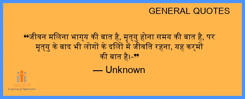 जीवन मिलना भाग्य की बात है, मृत्यु होना समय की बात है, पर मृत्यु के बाद भी लोगों के दिलों में जीवित रहना, यह कर्मों की बात है।-