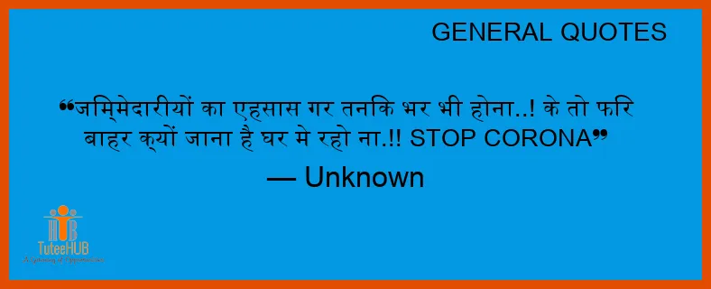 जिम्मेदारीयों का एहसास गर तनिक भर भी होना..! के तो फिर बाहर क्यों जाना है घर मे रहो ना.!! STOP CORONA