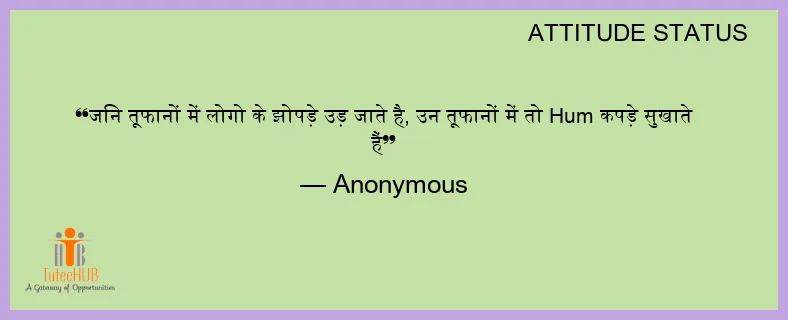 जिन तूफानों में लोगो के झोपड़े उड़ जाते है, उन तूफानों में तो Hum कपड़े सुखाते हैं