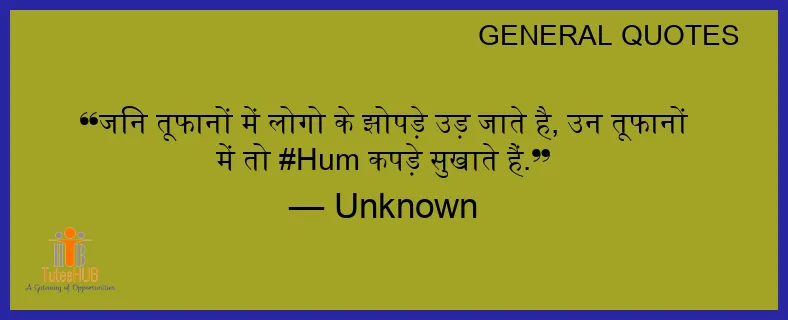 जिन तूफानों में लोगो के झोपड़े उड़ जाते है, उन तूफानों में तो #HUM कपड़े सुखाते हैं.