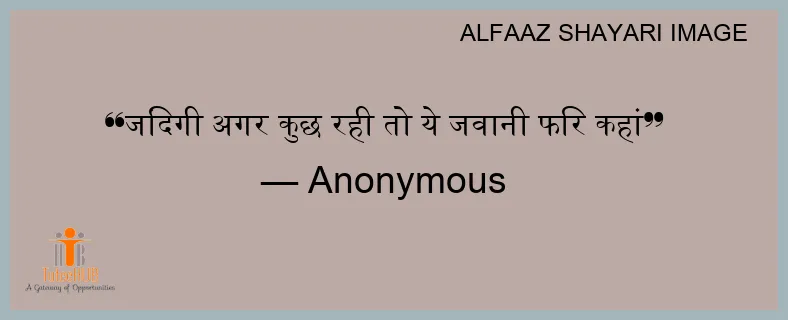 जिंदगी अगर कुछ रही तो ये जवानी फिर कहां
