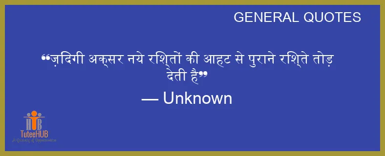 ज़िंदगी अक्सर नये रिश्तों की आहट से पुराने रिश्ते तोड़ देती है