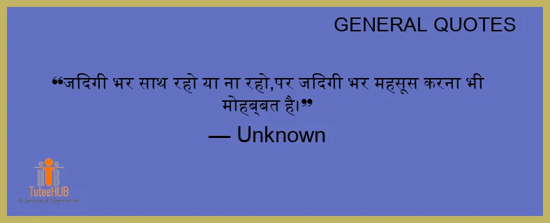 जिंदगी भर साथ रहो या ना रहो,पर जिंदगी भर महसूस करना भी मोहब्बत है।