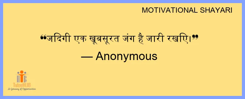 जिंदगी एक खूबसूरत जंग है जारी रखिए।