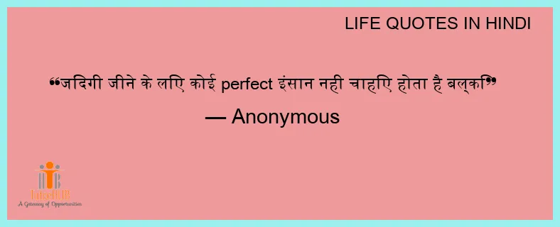 जिंदगी जीने के लिए कोई perfect इंसान नही चाहिए होता है बल्कि