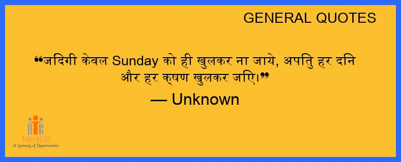 जिंदगी केवल SUNDAY को ही खुलकर ना जाये, अपितु हर दिन और हर क्षण खुलकर जिए।
