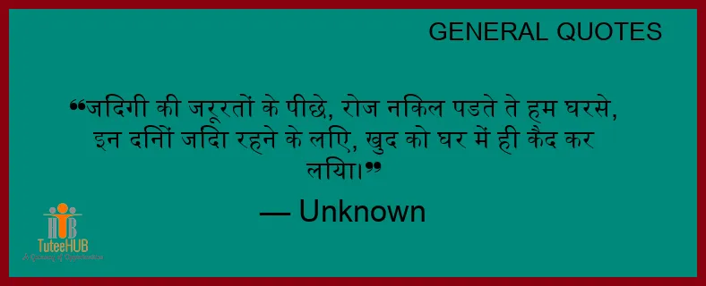 जिंदगी की जरूरतों के पीछे, रोज निकल पडते ते हम घरसे, इन दिनों जिंदा रहने के लिए, खुद को घर में ही कैद कर लिया।