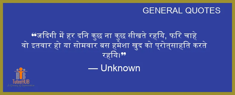 जिंदगी में हर दिन कुछ ना कुछ सीखते रहिये, फिर चाहे वो इतवार हो या सोमवार बस हमेशा खुद को प्रोत्साहित करते रहिये।