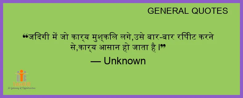 जिंदगी में जो कार्य मुश्किल लगे,उसे बार-बार रिपीट करने से,कार्य आसान हो जाता है L
